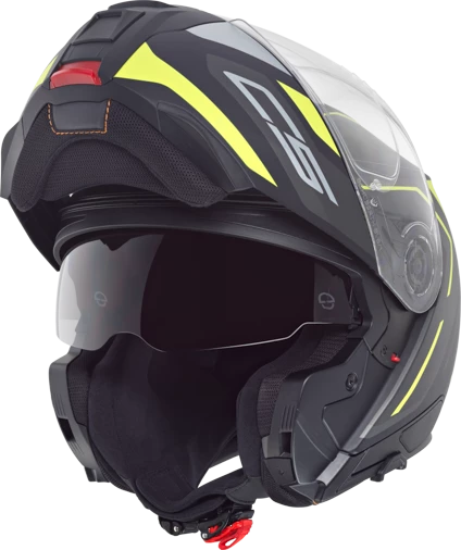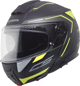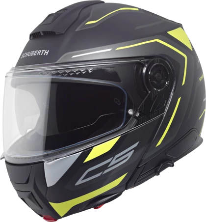 Schuberth C5 er nyeste generasjon åpningshjelm med dobbel P/J godkjenning i henhold til den nye ECE-R 22.06 hjelmstandarden. Dette betyr at Schuberth C5 er godkjent som både helhjelm og jethjelm. Schuberth C5 gir deg den beste kombinasjon av sikkerhet, topp aerodynamikk og aeroakustistk ytelse med et kompakt design og lav totaltvekt. Interiøret i coolmax stoff har mange flere individuelle tilpasningsmuligheter enn tidligere.
